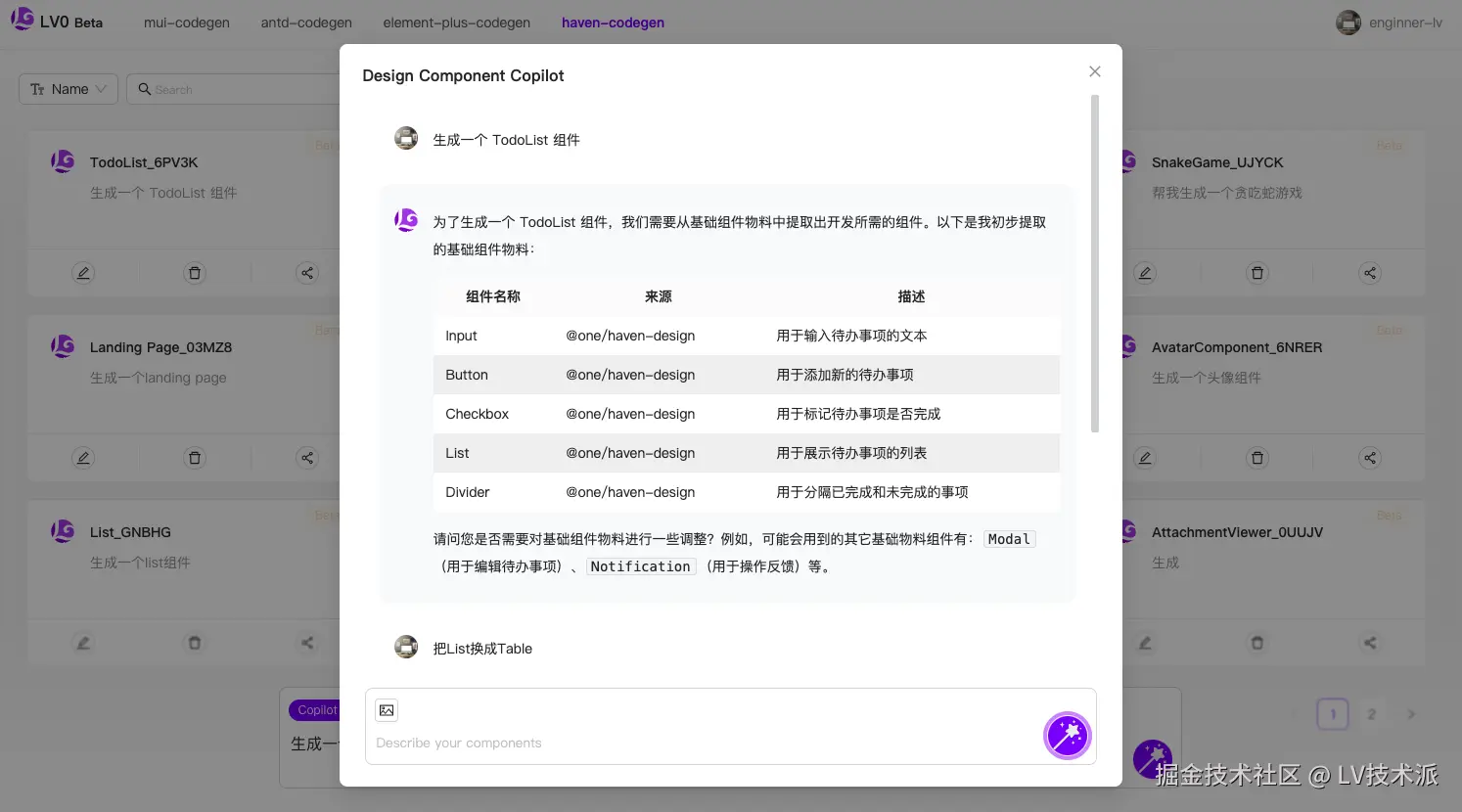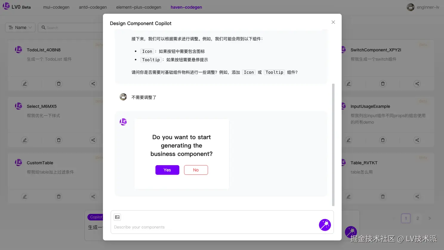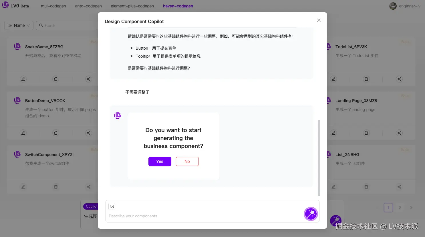 了解 LV0 的更多使用方式,可以查看循序渐进式代码生成、聊天式代码生成