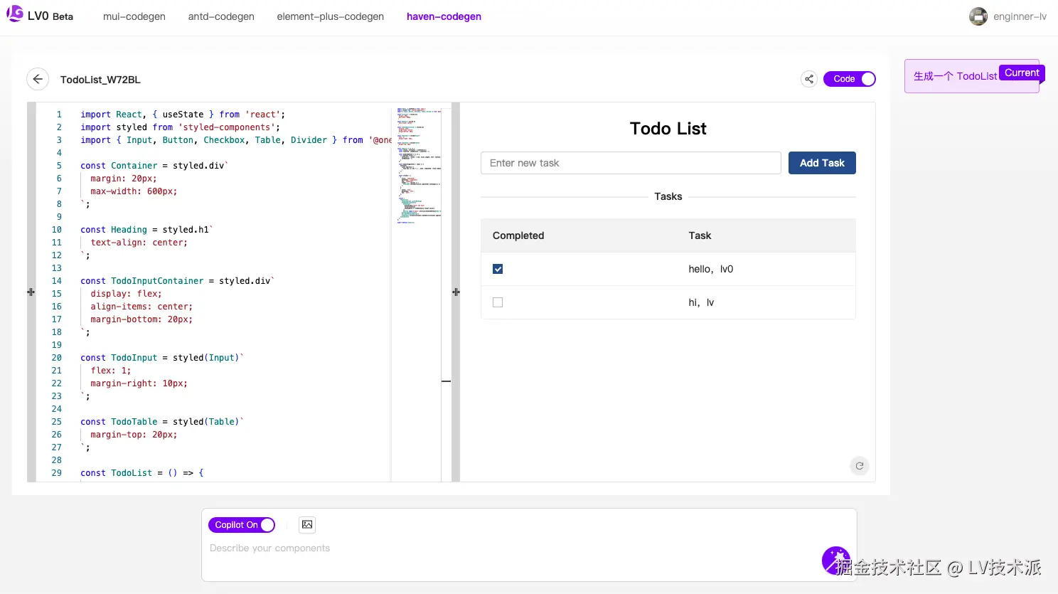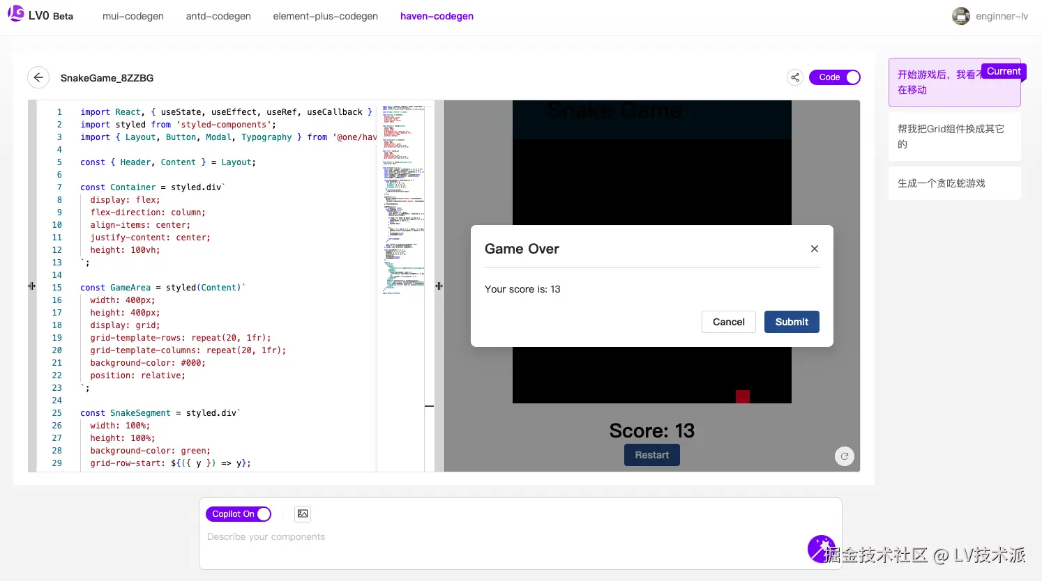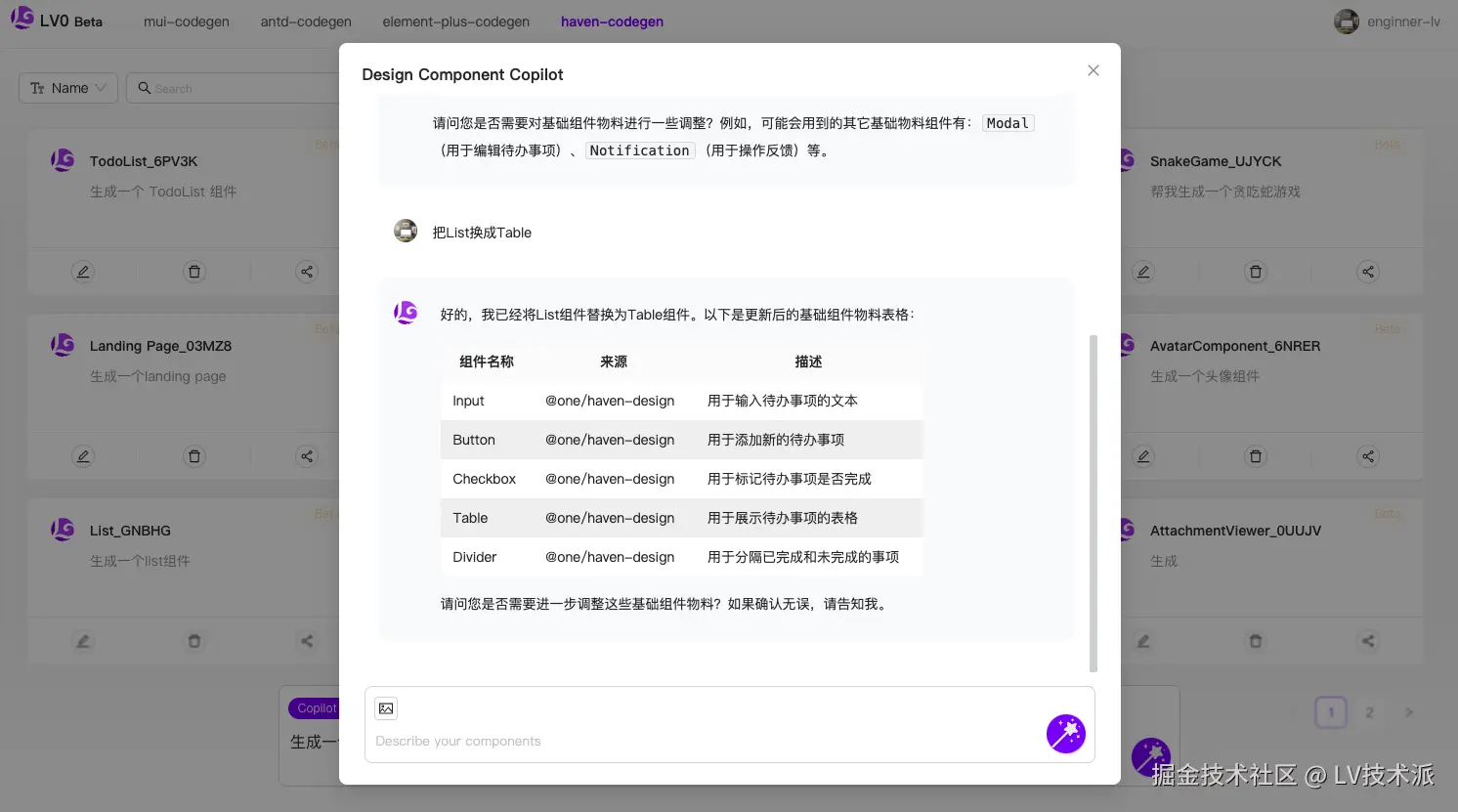 了解 LV0 的更多使用方式,可以查看循序渐进式代码生成、聊天式代码生成