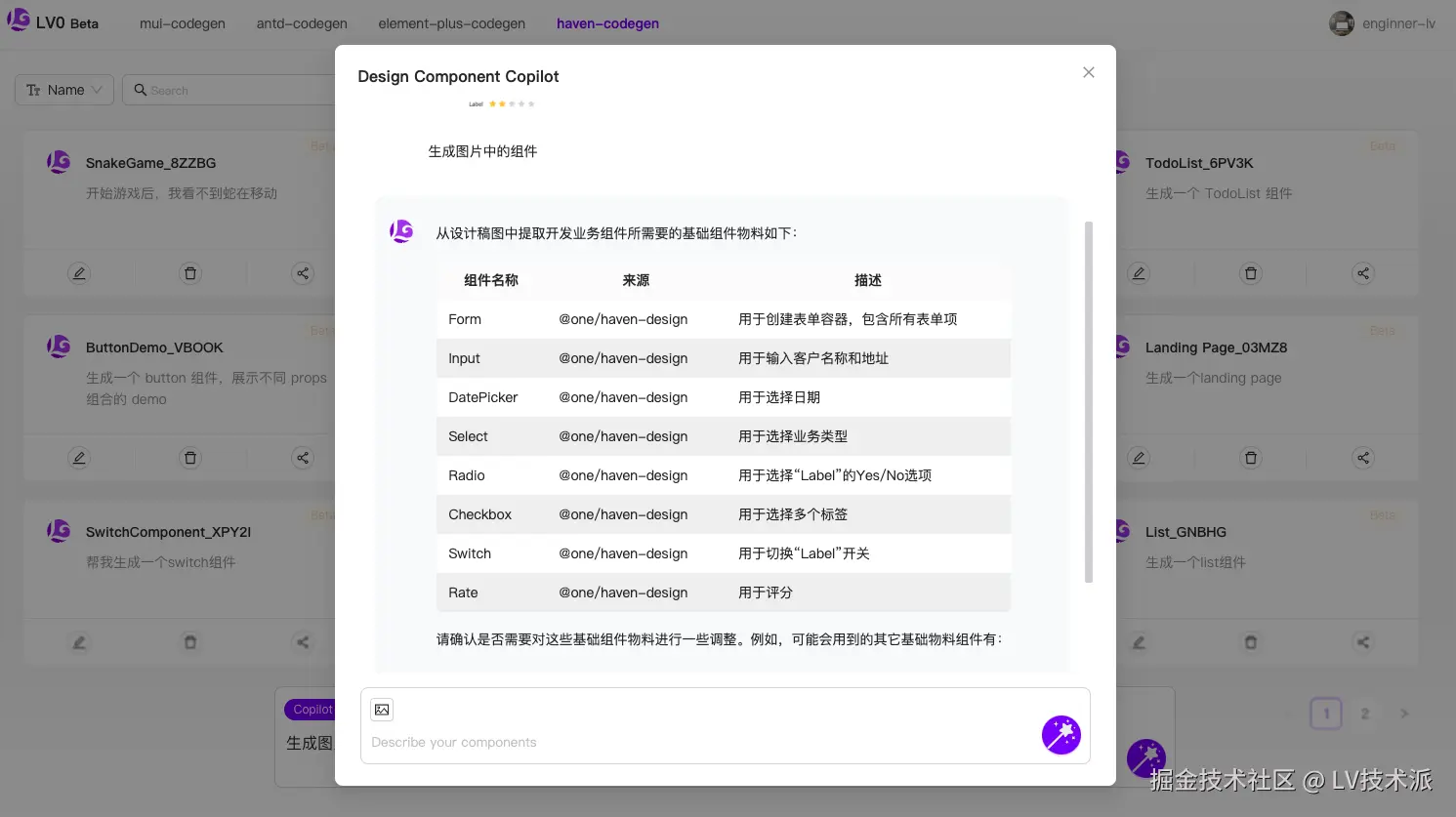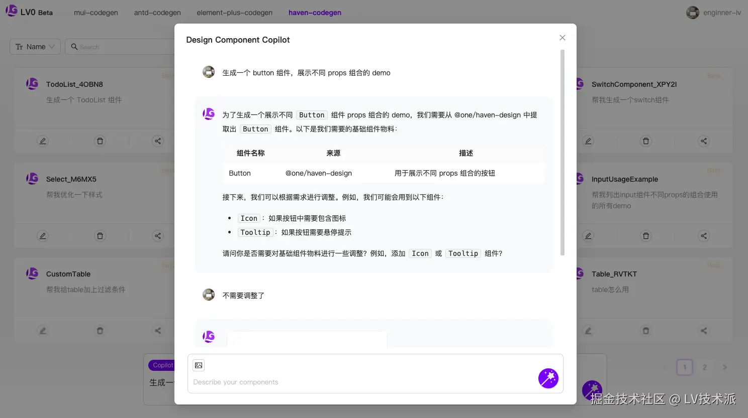 本篇,我们分享一些使用 LV0 来基于公司私有组件库来生成代码的案例。