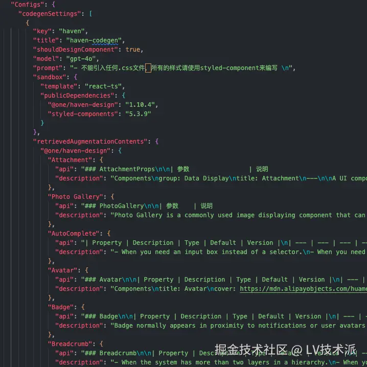 如上,我们在 LV0 中使用了公司私有组件库来生成代码,现阶段在 LV0 中是通过配置文件来实现的。👇