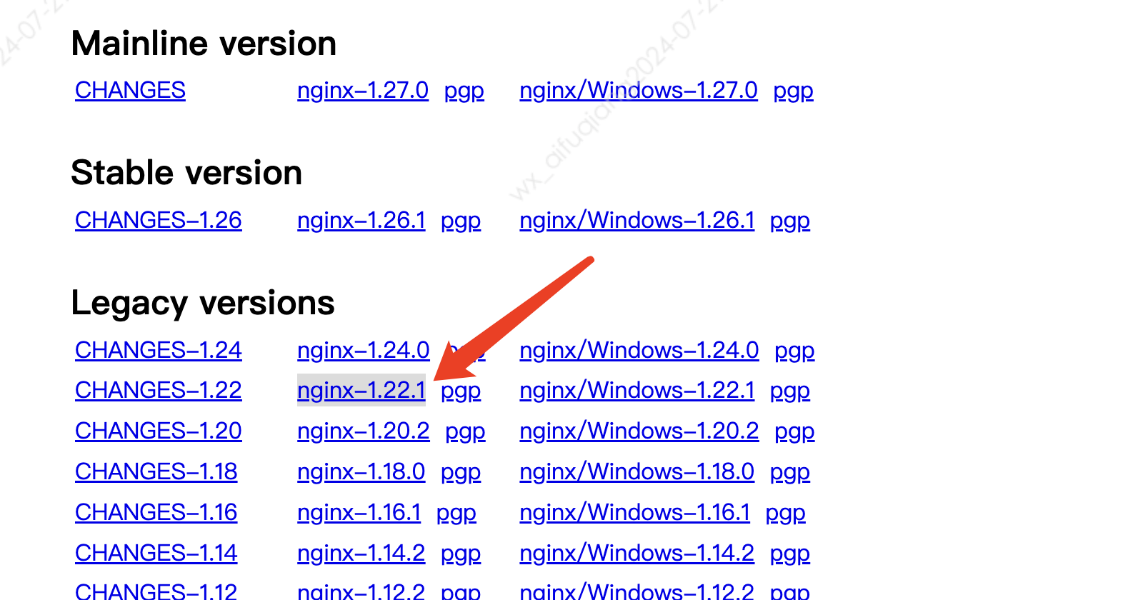 首先我们去官网下载nginx,连接地址:nginx.org/en/download… ,这里我们下载1.22.1版本的nginx.