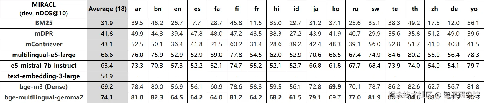 在多语言能力方面,BGE-Multilingual-Gemma2表现出显著优势,尤其在中英文能力提升方面表现突出。
