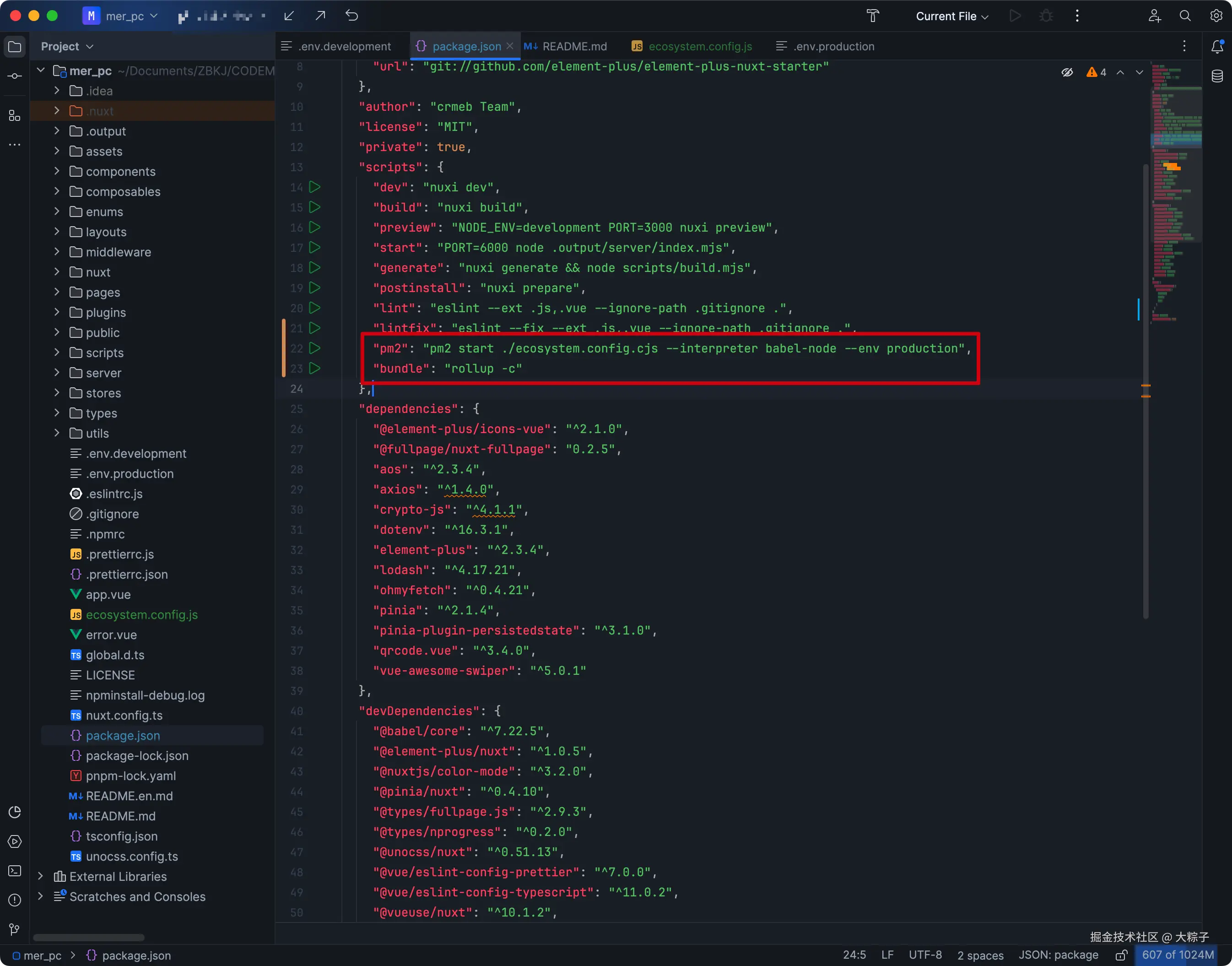 注意:对比package.json代码修改配置即可,如果2024年5月之后下载的代码可以直接用命令启动