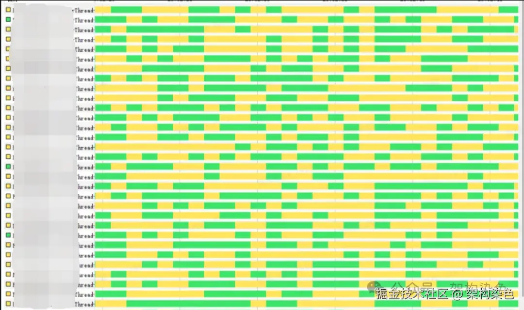 - 黄色代表线程处于等待状态