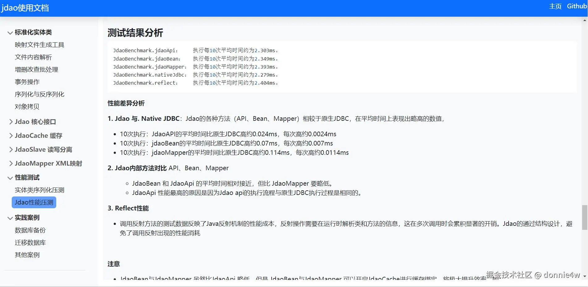 复杂SQL的执行:在实践中发现,复杂SQL,特别是多表关联的SQL,通常需要优化,这需要对表结构,表索引性质等数据库属性有所了解。 而将复杂SQL使用 java对象进行拼接,通常会增加理解上的难度。甚至,开发者都不知道对象拼接后的最终执行SQL是什么,这无疑增加了风险和维护难度。 因此Jdao在复杂SQL问题上,建议调用Jdao的CURD接口执行,Jdao提供了灵活的数据转换和高效的javaBean映射实现,可以避免过渡使用反射等耗时的操作。
