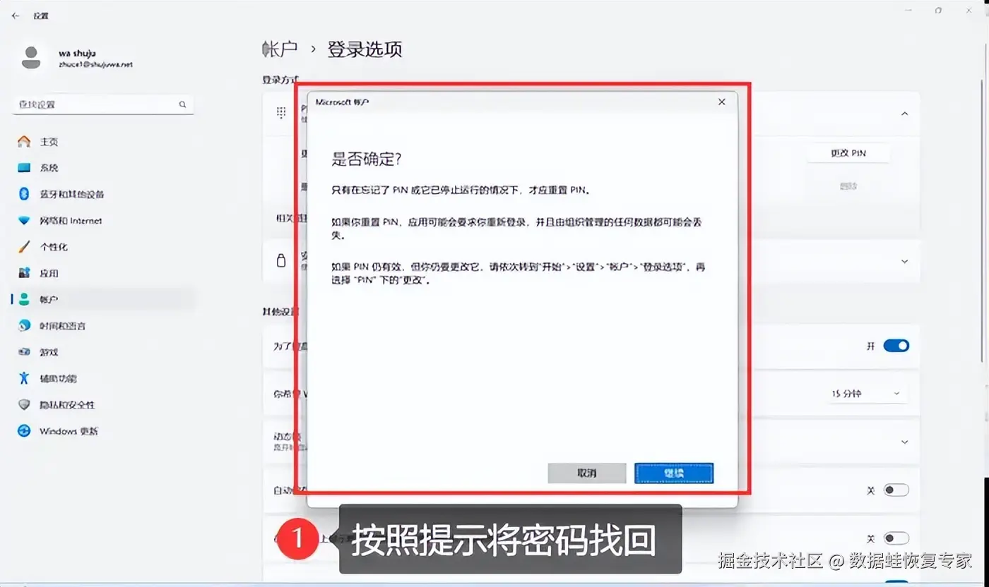 第一步:首先,使用密码登录电脑。如果已经将密码忘记,可以直接点击 【忘记密码】 或 【我忘记了我的PIN】 等类似选项,根据提示进行操作。