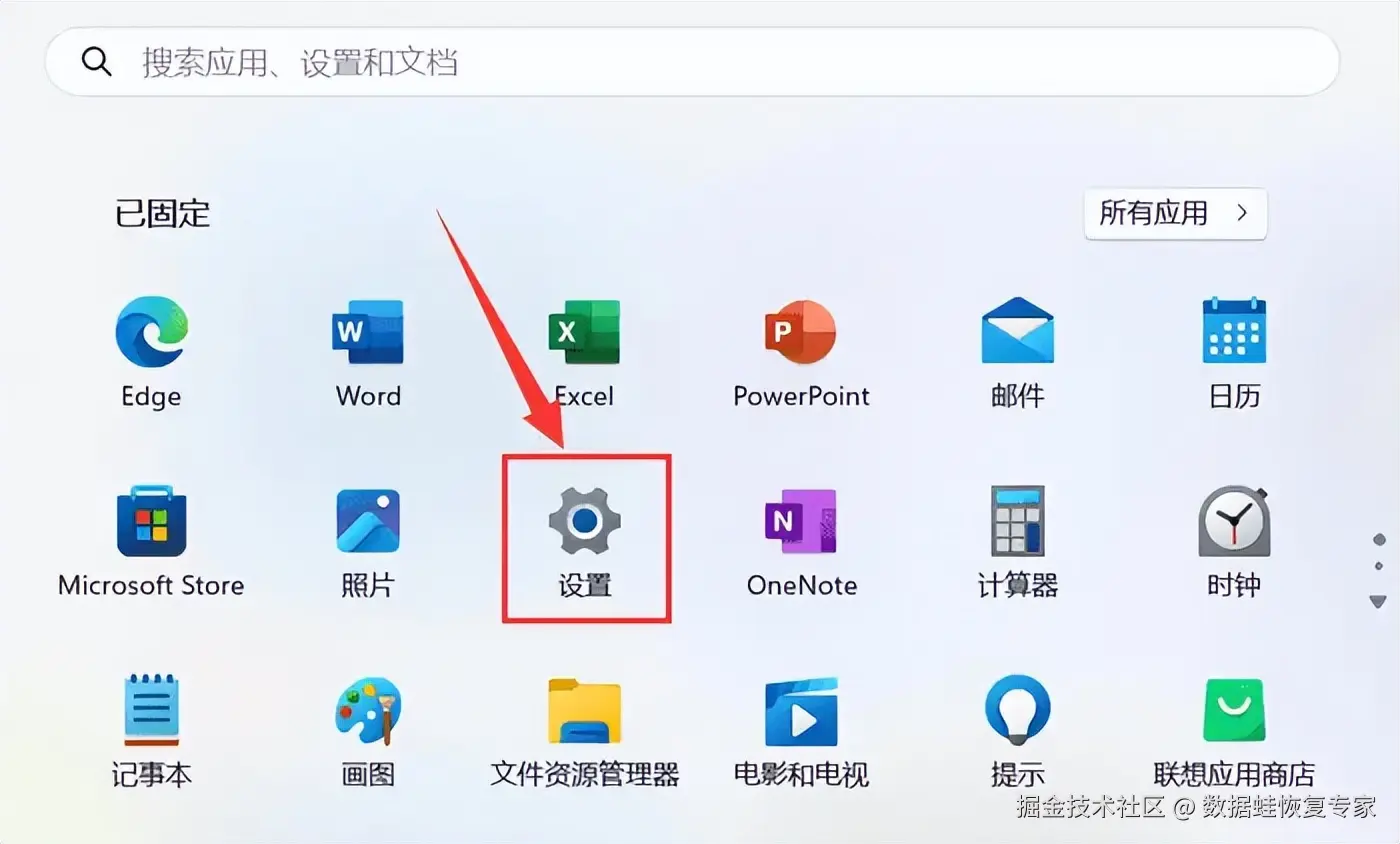 第二步:点击电脑左下角的 【开始】 按钮,选择 【设置】 图标。