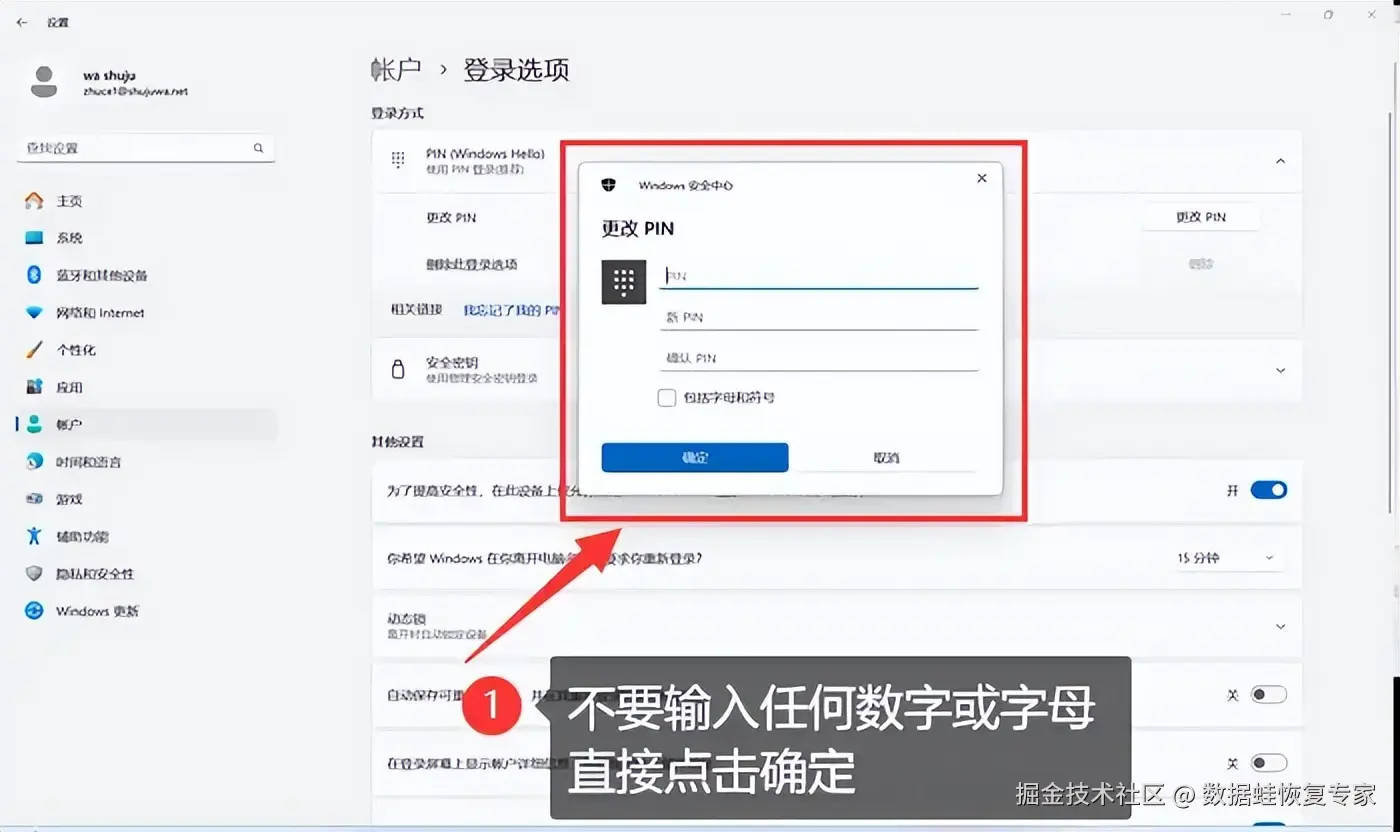 第六步:如果你突然忘记了密码,那么可以点击 【我忘记了我的PIN】 或 【忘记密码】 等相关选项,进行其他操作,将密码找回。