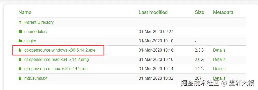 这里咱们安装Qt5.14.2(不要问为什么不装更新版本的,从Qt5.15.0起,对于开源用户,Qt官方不再提供独立安装文件,所以源码安装太麻烦,以后再研究^_^)