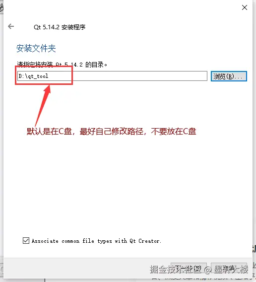 现在你可以选择安装路径,建议大家自行修改一下(注意:路径中不能有空格,也不能有中文),确保自己能找到位置,后续可能会有一些配置,需要找到路径