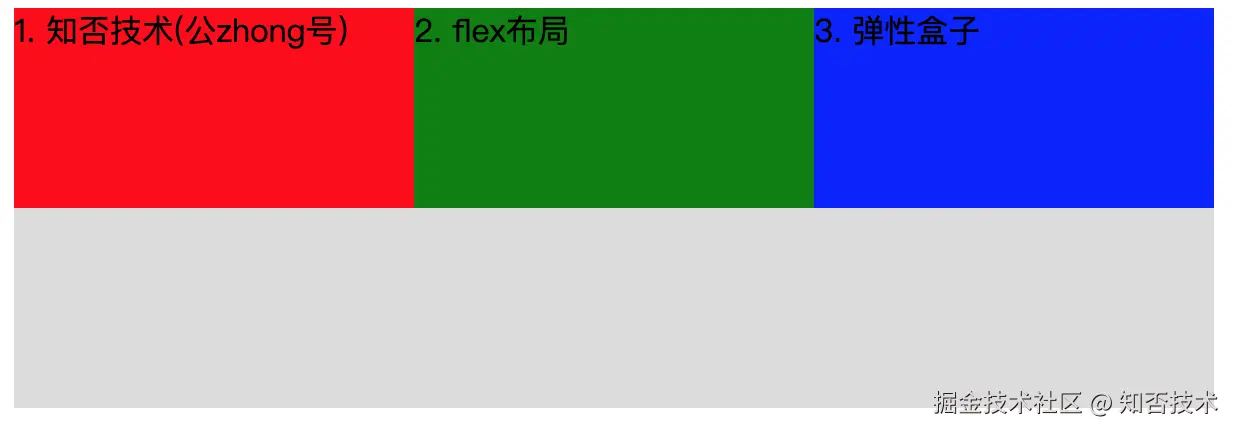 因为 flex-direction 默认值是 row,所以子元素默认横向排列。