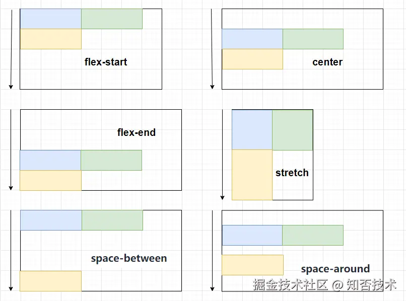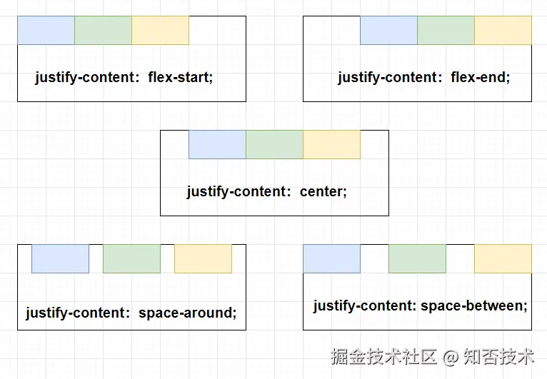 justify-content :子元素的排列方式,默认是 flex-start。