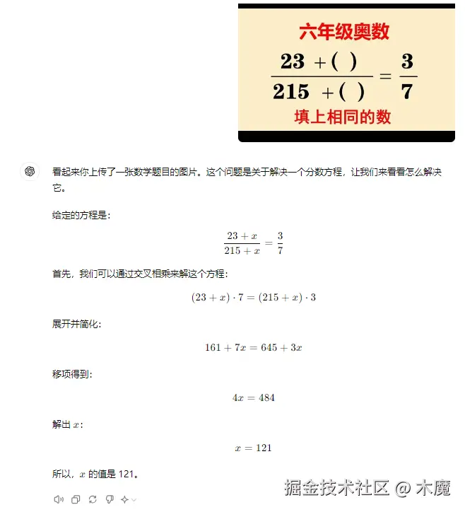 玩法4:让chatgpt 成为家庭教师,辅助孩子成长 许多家长下班回来要监督孩子的功课作业,有时候免不了要亲自下场,如果遇到难题加上工作一整天的劳累,确实会很糟心。这个时候就可以把问题拍个照片给chatgpt ,chatgpt 的能力解决一些小初高的问题是错错有余的,但是为了培养孩子的独立学习能力,求助chatgpt的时候尽量避开孩子。