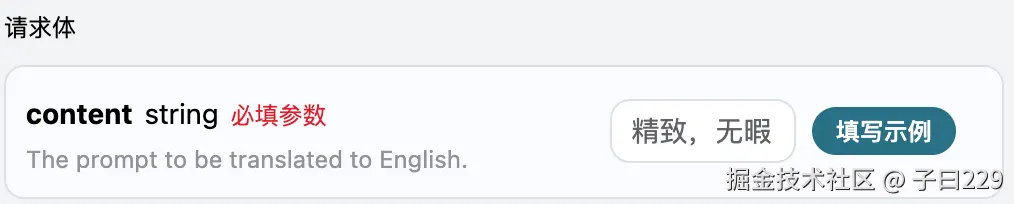 可以看到,结果中有一个 content 字段,里面包含了翻译后的英文 prompt,它是对应中文 prompt 的翻译结果。