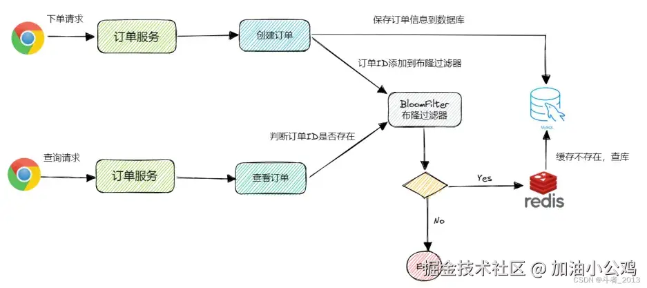 // 先从布隆过滤器中判断时候有此订单