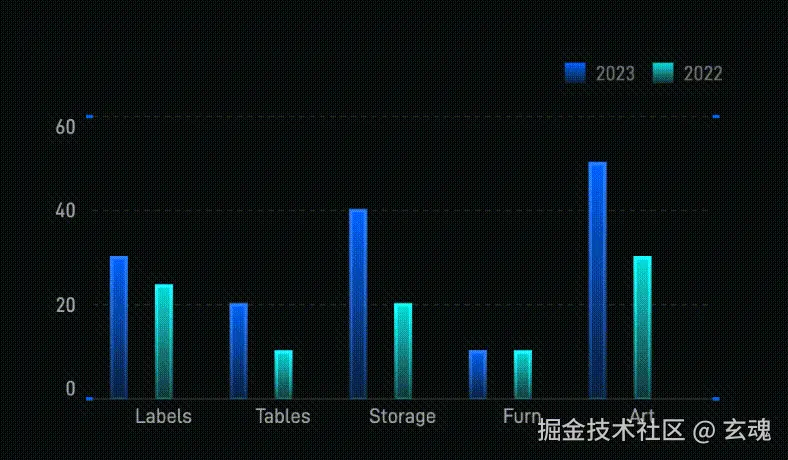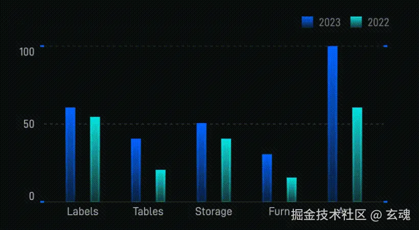 动画在前端产品中是很重要的,它能增强用户体验,提升信息传达效果,还能塑造品牌形象。在数据产品中,精心设计的动画,可以直观地呈现复杂数据和信息,突出关键数据变化趋势,给用户深刻印象,提升品牌辨识度和美誉度。VChart 不仅具备基本的图表绘制能力,还提供了灵活丰富的动画能力。