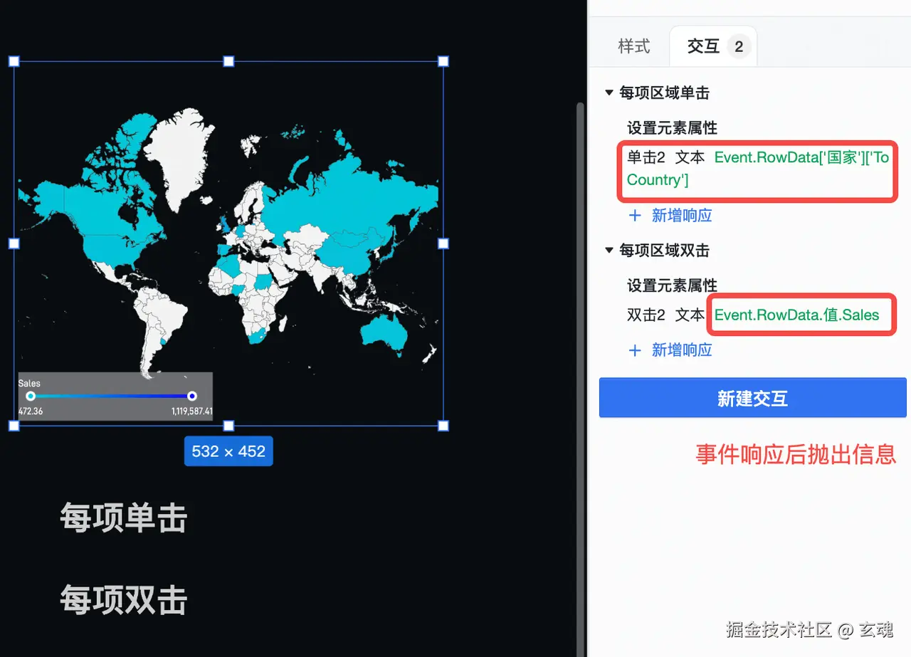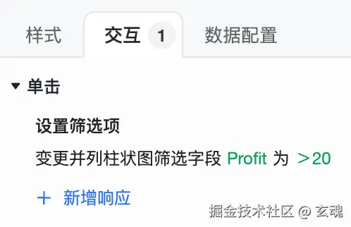 大屏通用交互需要注意图表参数的透出是否正确, 比如下面这种场景就依赖图表参数: