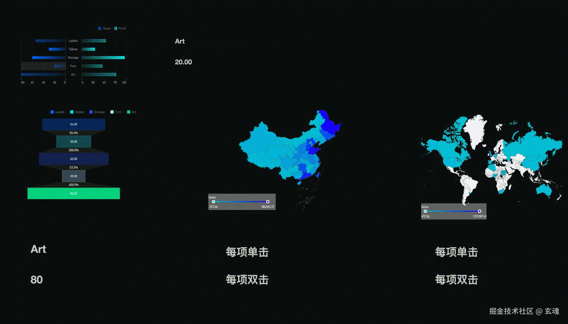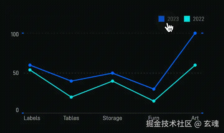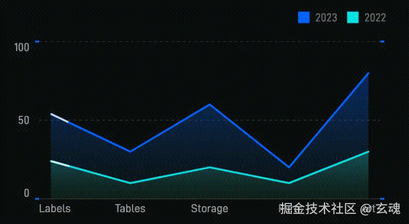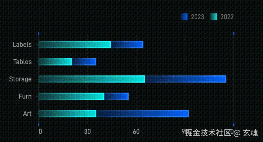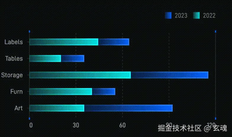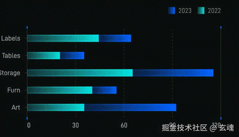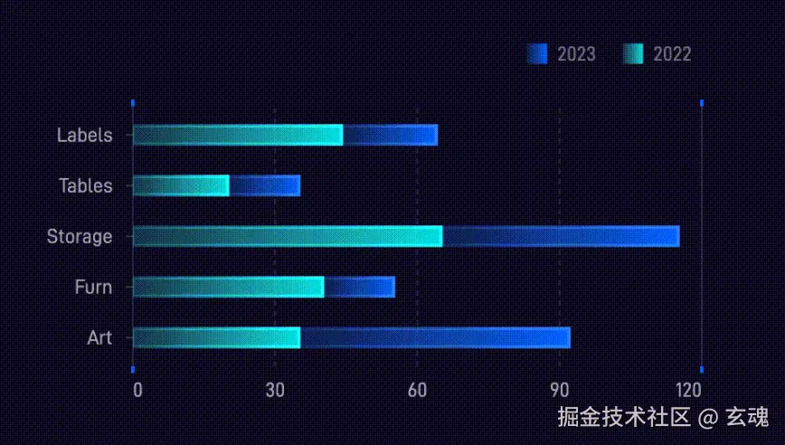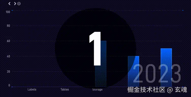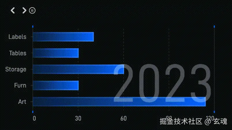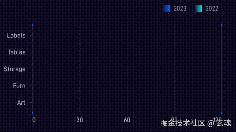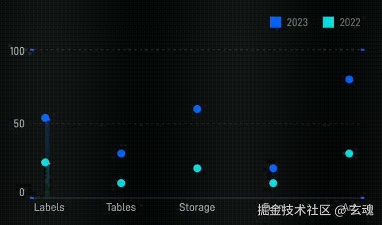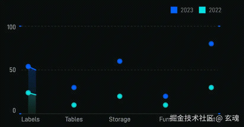 常态动画的主要思路有2种:循环执行某种动画、附加额外图元以增强图表图元,我们将前者定义为“轮播”,后者定义为“氛围”。