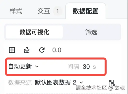 - 更新:大屏的定时更新数据及交互改变属性时, 会引发图表更新并重绘。