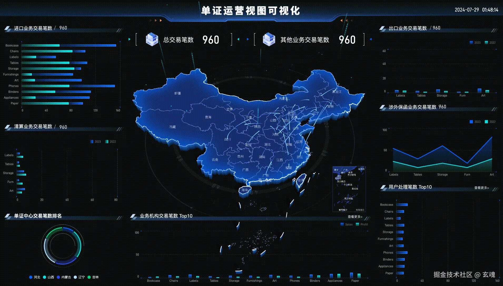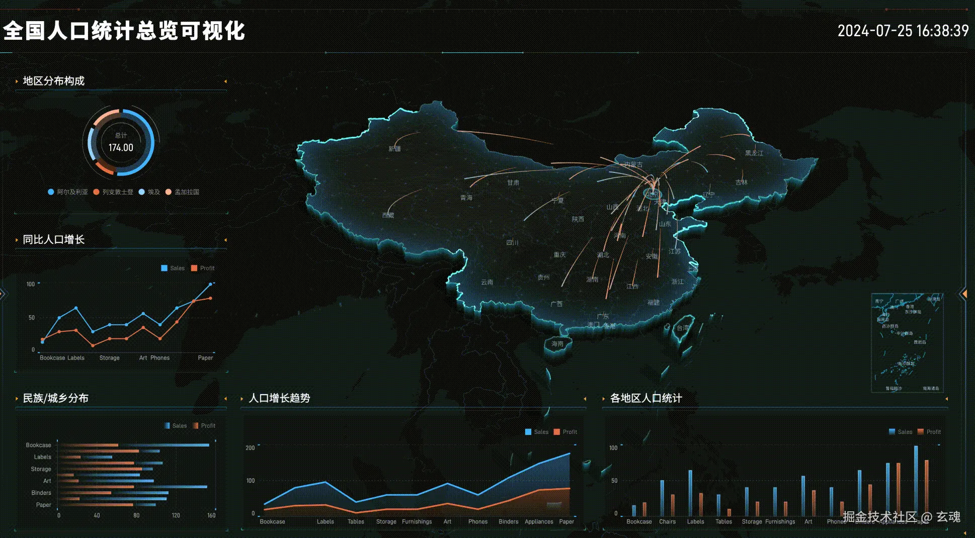 可视化展示:利用图形、图表、地图等直观的可视化元素呈现数据,便于快速理解和解读。