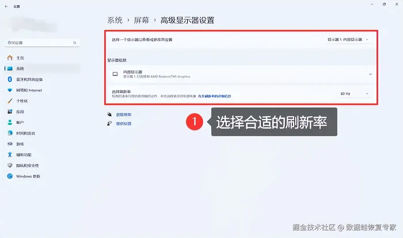 步骤2:找到 【选择刷新率】 选项,选择较高的值。