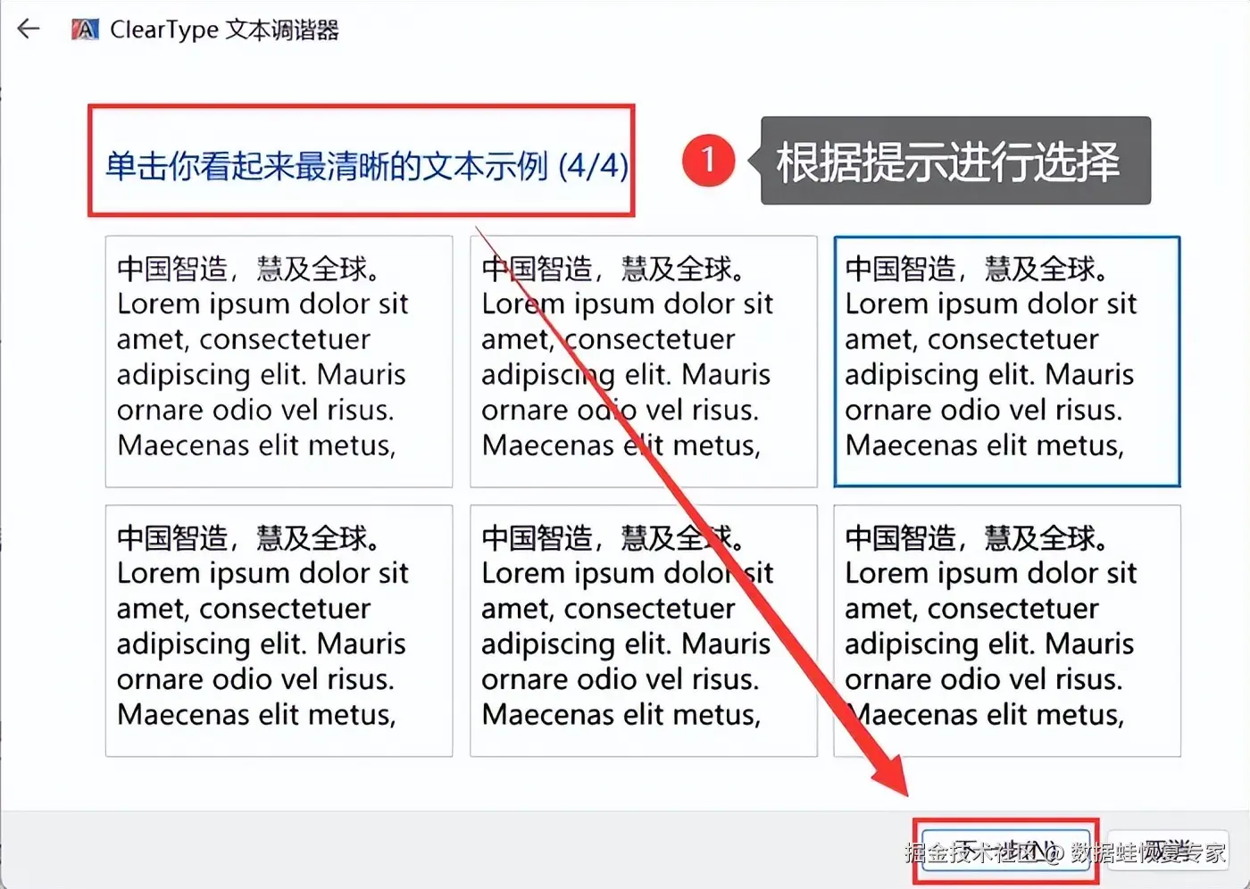 步骤2:选择你觉得舒适的文本粗细、锐度等,按照提示进行操作即可。