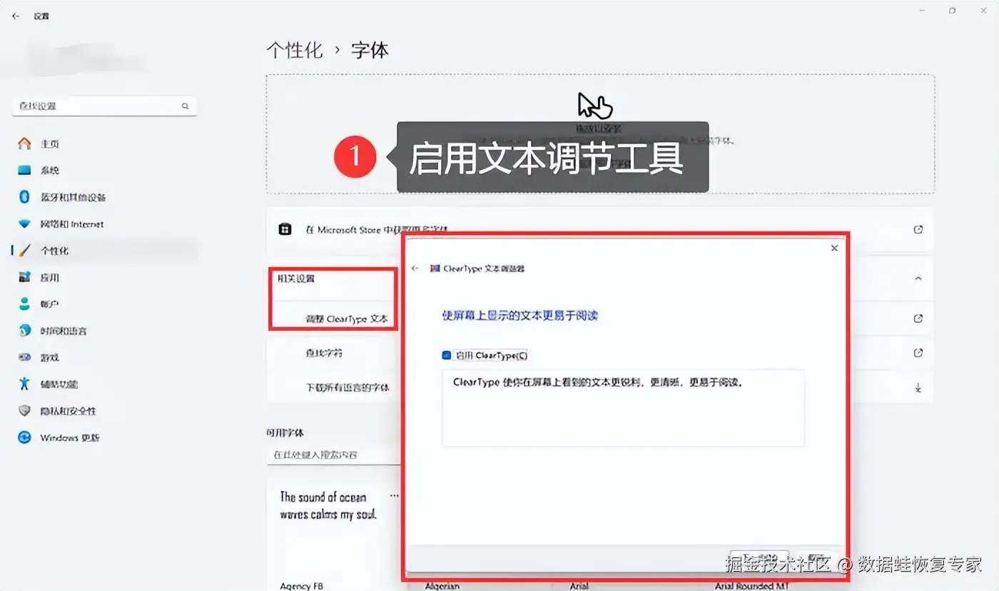如果以上两个方法仍然无法完全解决文字模糊的问题,或者你不知道电脑屏幕分辨率多少合适,那么可以尝试文本调节。在Windows系统中,我们可以使用【ClearType文本调节器】来优化文本的显示效果。这个工具可以根据我们的视觉需求和显示器的性能,自动调整文本的清晰度和可读性。