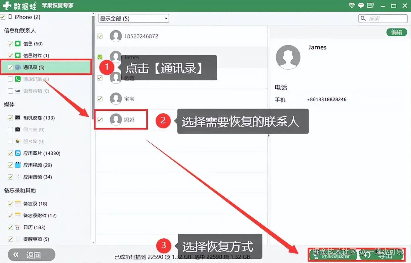 在数字化时代,通讯录作为我们社交生活的重要组成部分,其安全性不容忽视。尽管iCloud等云服务为我们提供了便捷的恢复方案,但有时我们可能需要寻找更专业或特定的工具来满足苹果手机通讯录恢复需求。这时,像数据 蛙 苹果恢复专家这样的专业软件就显得尤为有用。它们通常提供更灵活的数据恢复选项,帮助我们在在大多数情况下保护重要的通讯录信息。