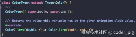 - drive(Animatable child):将一个 Tween 或 CurveTween 链接到动画上。