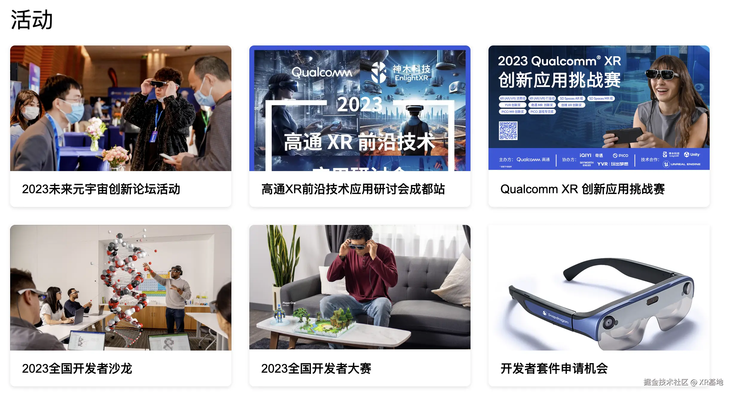 仅有 SDK 的支持并不完全足够,为了让更多的开发者能够上手使用 Snapdragon Spaces Platform 来进行开发,并和行业内的朋友们进行交流,神木也提供了包括应用挑战赛、开发者沙龙、开发者套件申请在内的 多项活动内容: