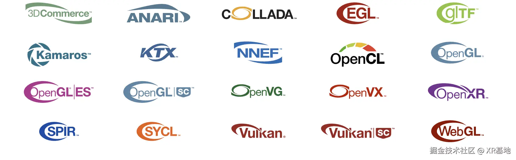 在 Khronos Group 成立后,一些我们现在可能耳熟能详公开标准在 Khronos Group 的不断努力下被制定出来: