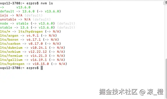 nvm ls :打印出所有的版本