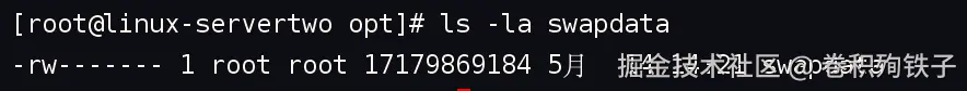 chown root:root /opt/swapdata # 交换文件的所有者和所属组