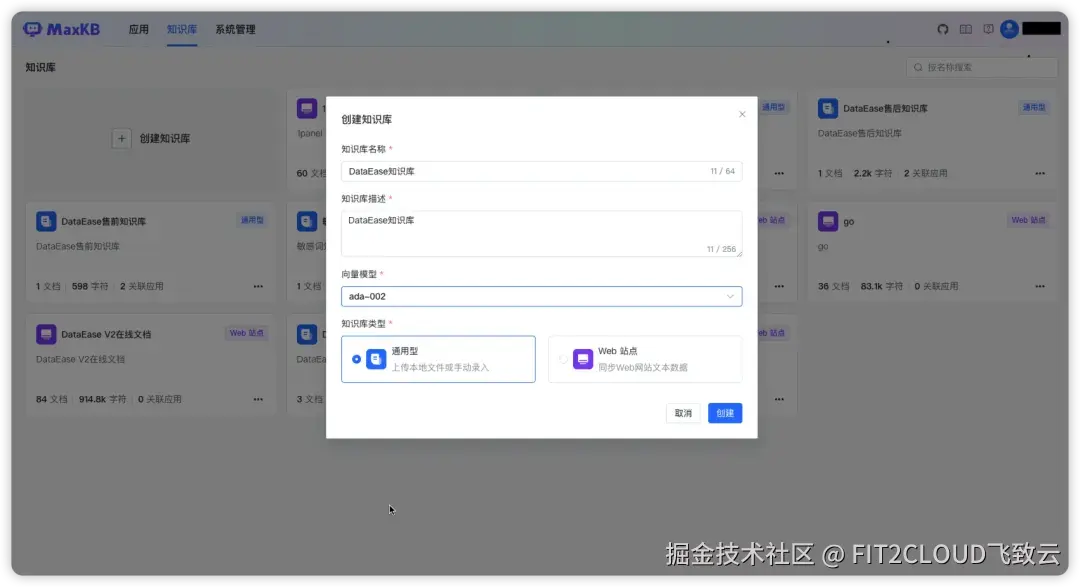 在v1.4.0社区版本中,MaxKB在创建知识库时支持知识库选择不同的向量模型进行向量化。相对于之前的对接单一向量模型,用户可以根据知识库的内容选择适合的向量模型,从而优化文档索引流程并且提高知识点召回率。