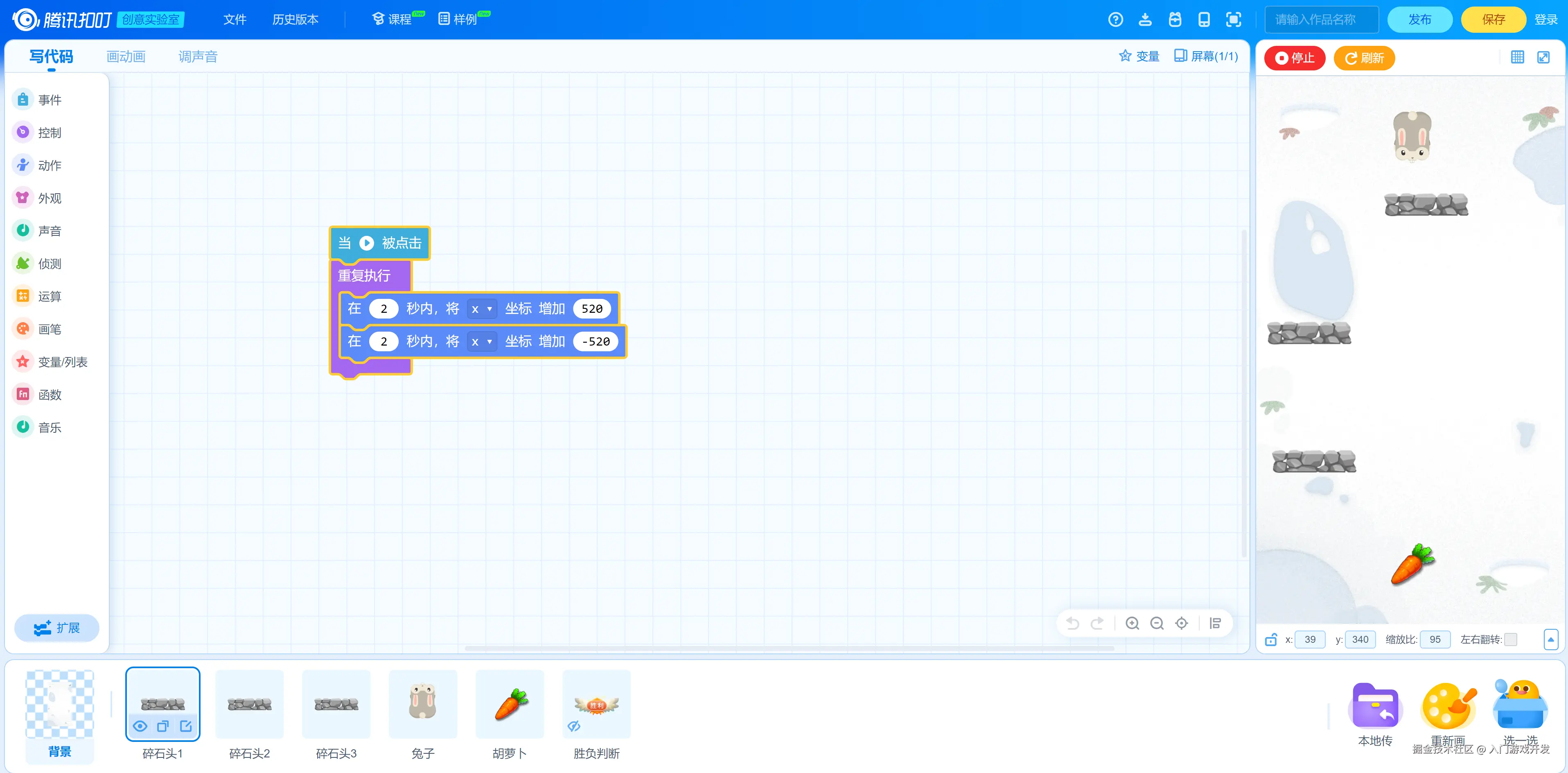 对于从来没有接触过游戏开发的同学来说,除非具备写代码能力,我不建议一开始就接触非常专业的开发工具比如Unity、Cocos Creator等等,否则很容易被劝退。埋头捣鼓十天半个月看不到效果,是非常沮丧的一件事情。学习路线过于陡峭不是一件好事,循序渐进的学习把握好节奏,几个月后发布一款自己的游戏是不成问题的。