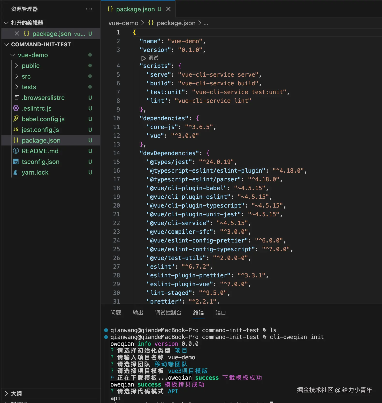 - 在终端输入 vue create vue-test-app,终端解析出 vue 命令