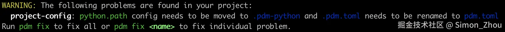 升级后老版本与新版本有差异,可执行pdm fix进行修复。