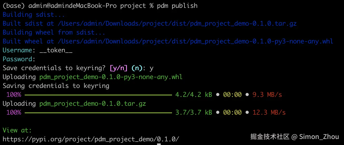 确保有pypi.org账号,执行如下命令:
