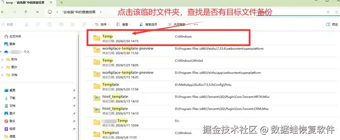 回收站恢复方法三:通过临时文件夹寻找文件备份