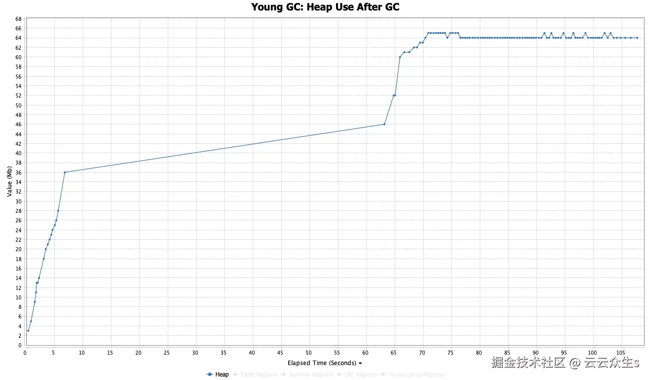 在这个特定的测试用例中,总共 -Xmx4G 足够并且实际上被使用,但通常标准建议是将 -Xmx 设置为观察到的堆利用率的两倍;在这里,它将是 -Xmx6G。