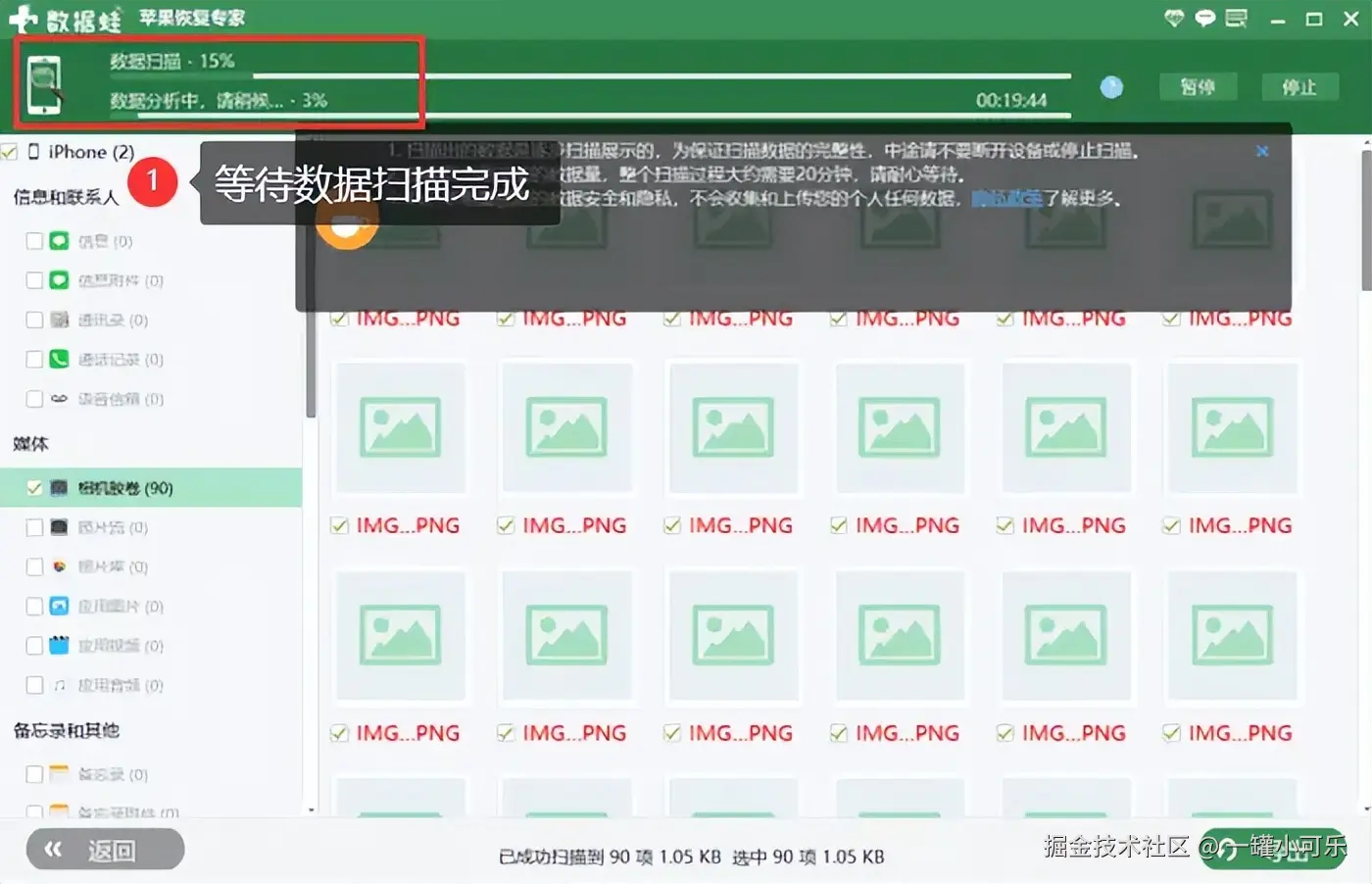 (2)支持多种数据类型恢复,如照片、视频、消息等;