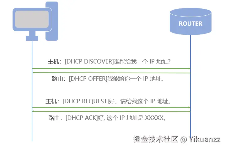 动态主机配置协议(DHCP,Dynamic Host Configuration Protocol):是一种自动分配 IP 地址的协议,它简化了网络管理,避免了手动配置每个设备的 IP 地址。