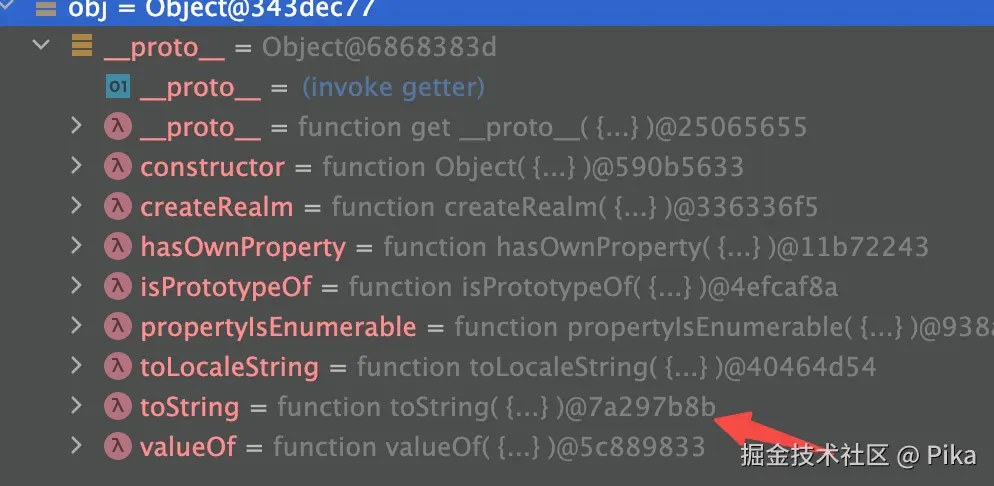 这就是我们为什么自定义的类对象也有toString这种基础方法,因为按照链的关系它也继承了Object的东西,即能够使用Object的prototype对象定义的方法