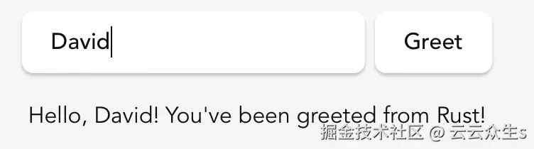 我们能够看到 JavaScript 中的 invoke 调用到达处理字符串的 Rust greet 函数。这是很好的一点,因为我们可以使用 Tauri 帮我们管理的 Rust 函数。(我们还需要了解 greet 函数的生成器。)