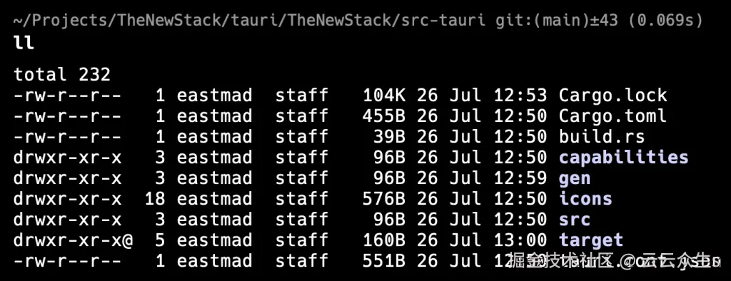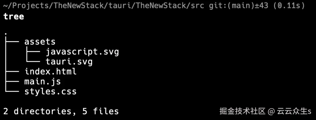 如果我们回到在生成区域中的主目录,我们会注意到 src-tauri: