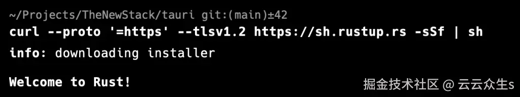 最后,它提醒您启动一个新的 shell 或使用 env 文件。我注意到所有这些都有一种新的更友好的口吻——就好像,也许,Rust 现在很流行!