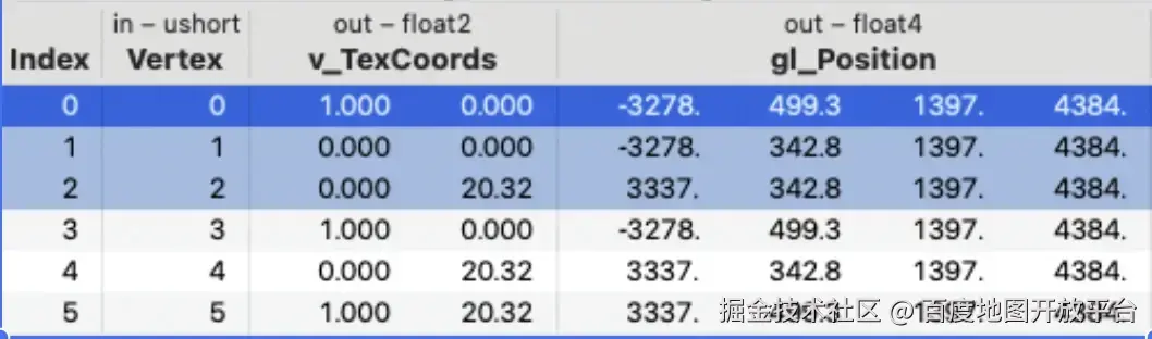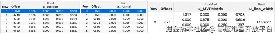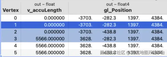 新版中(图 4):a_position 中 xyz 代表位置,w 代表累计长度(纹理坐标及 Track 动画时使用);射线方向向量在 a_nomal 中,xy 代表法向量,z 的正负代表法向量的正逆,用于纹理计算;z 的绝对值代表线宽缩放比例,用于顶点偏移量计算。