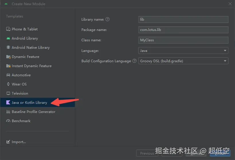 先创建一个Java library,必须为java库,不然会找不到javax包下的相关资源。