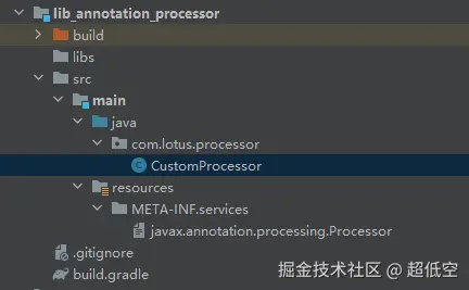 - 在 META-INF/services 目录文件夹下创建 javax.annotation.processing.Processor 文件;