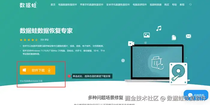 步骤1: 进入数据 蛙的官网,按指示完成数据 蛙恢复专家的下载安装。